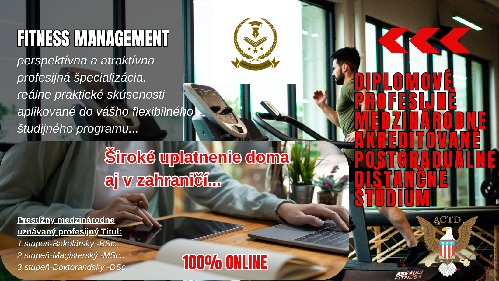 Prestížny medzinárodne uznávaný profesijný Titul: 1.stupeň-Bakalársky -BSc., 2.stupeň-Magisterský -MSc., 3.stupeň-Doktorandský -DSc. / študijné programy =perspektívna a atraktívna športová špecializácia: FITNESS Management =jedinečná príležitosť, len u nás...